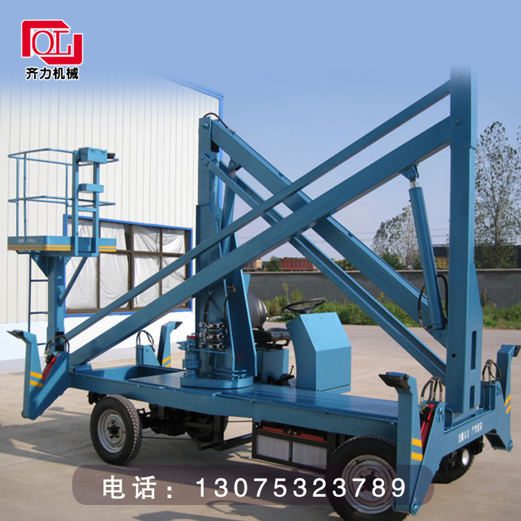 車載曲臂式升降機(jī):把曲臂式升降機(jī)安裝在汽車上,利用汽車動(dòng)力驅(qū)動(dòng)升降。適合遠(yuǎn)路程的野外高空作業(yè)。
